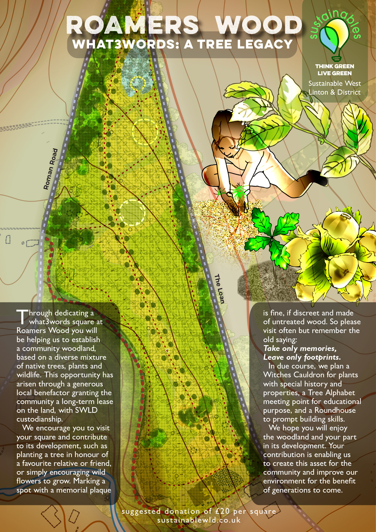 Through dedicating a what3words square at Roamers Wood you will be helping us to establish a community woodland, based on a diverse mixture of native trees, plants and wildlife. This opportunity has arisen through a generous local benefactor granting the community a long-term lease on the land, with SWLD custodianship.